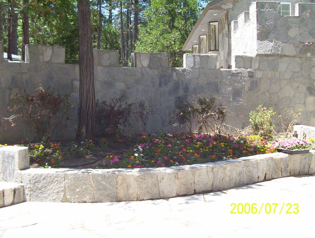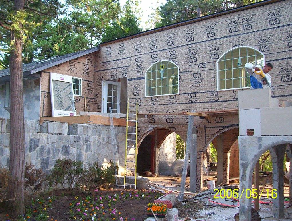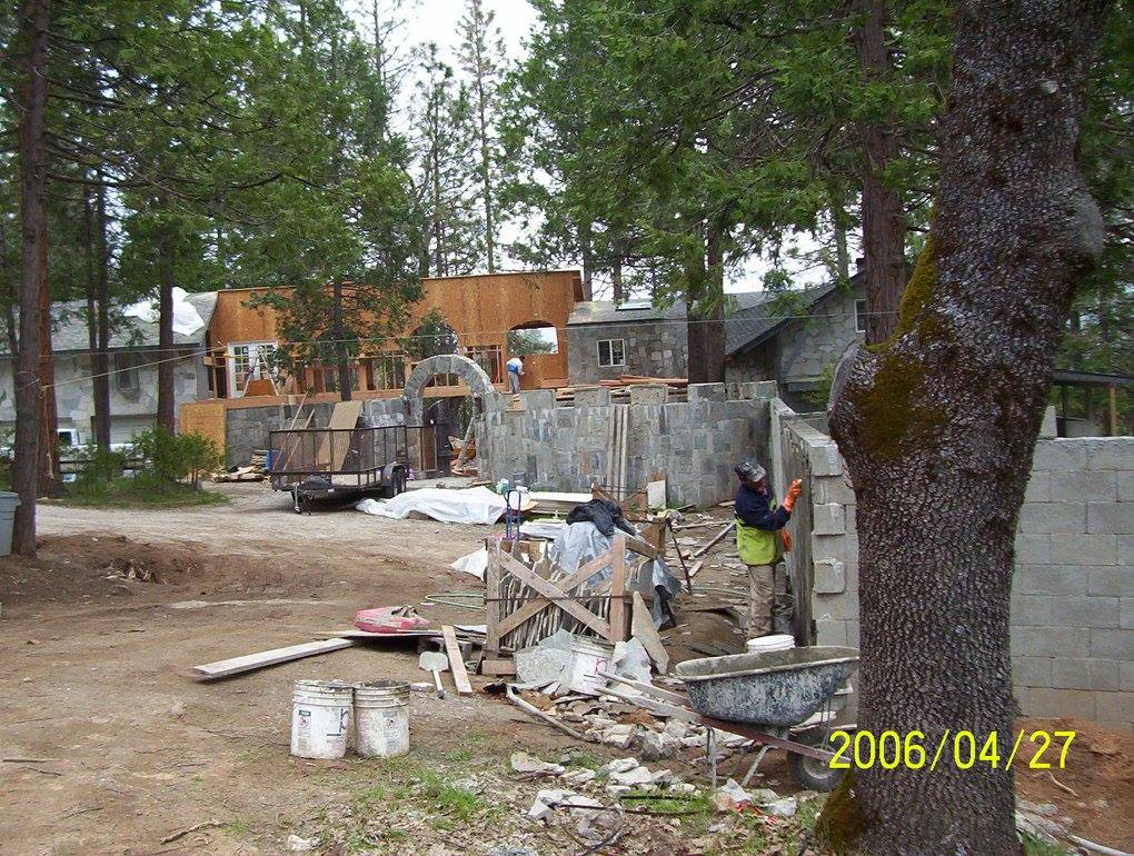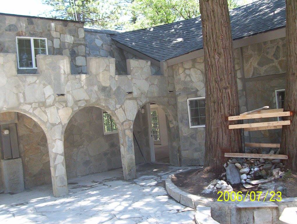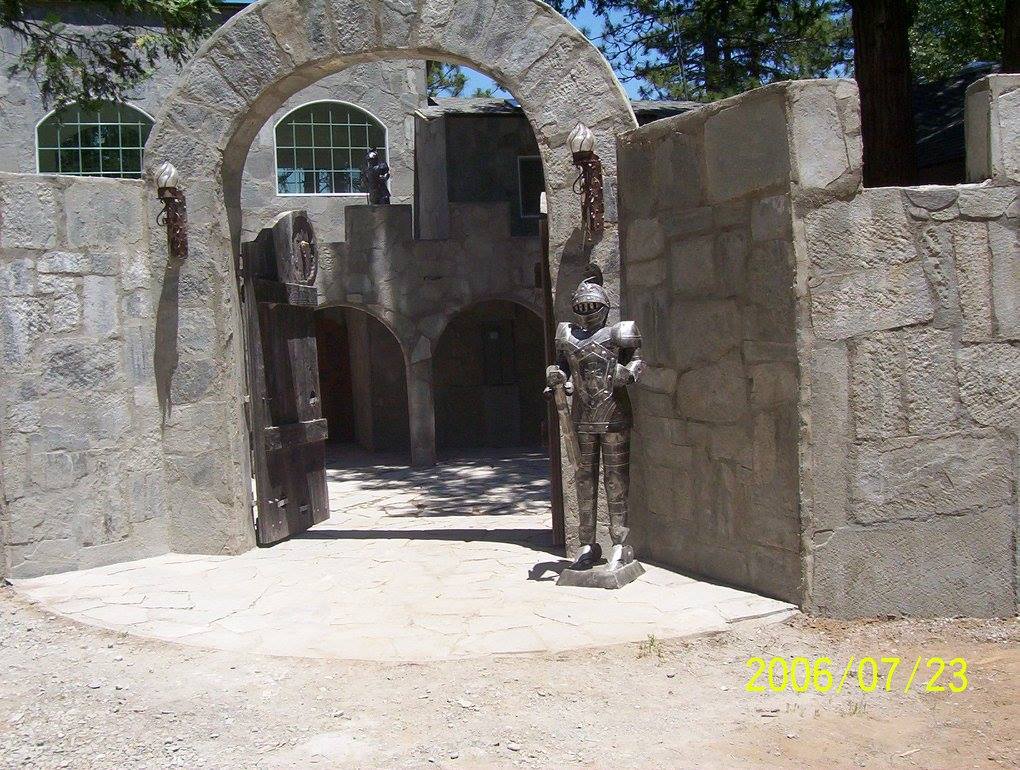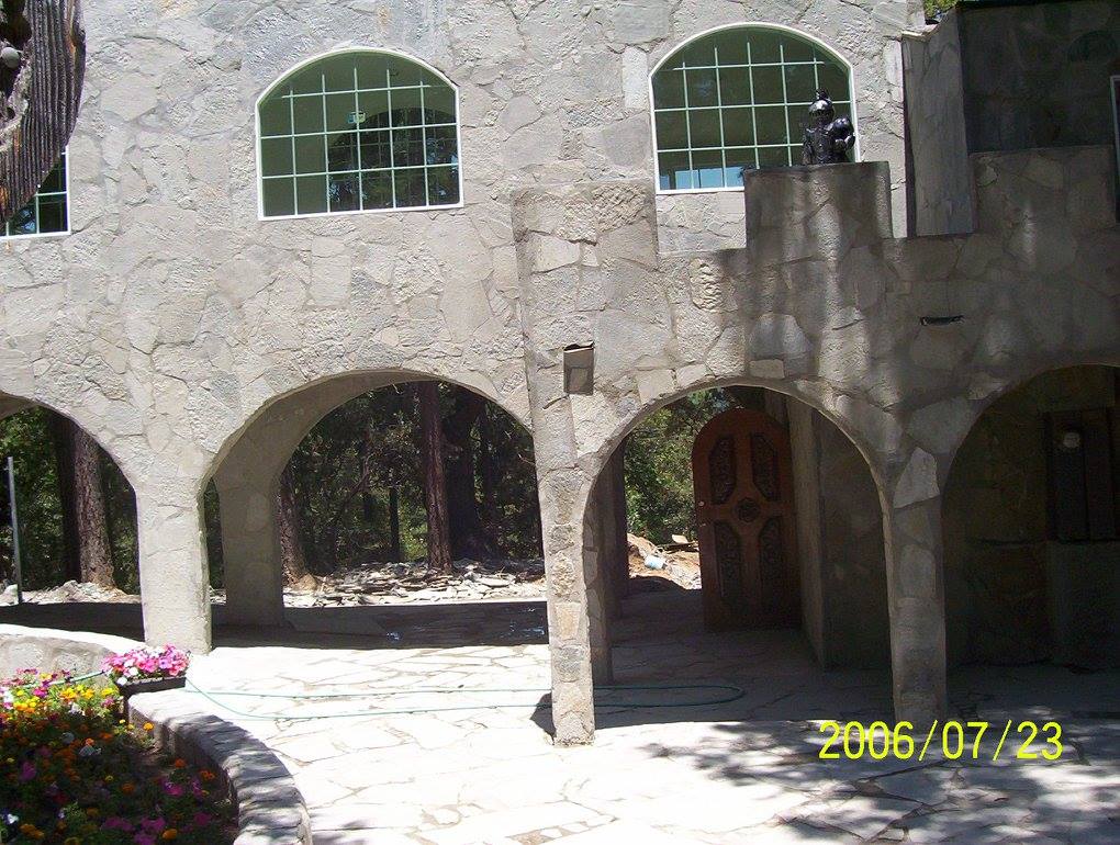 We started demolition on the guest house right away.  When the guest house was finished, Kieth got a loan on the value of the property to start remodeling on the main house.  The house was big and needed to be remodeled from the inside-out.  We added a bridge to connect the existing 3-car garage to the house and added two apartments above the 3-car garage.  We built block walls and reinforced them with rebar and rock over the block for finished look. 80 yards of stamped concrete were added to the property as driveways.  Castle-look doors were hand-made by us.  Windows and doors were all new.  For the entrance we built a draw bridge.  Three waterfalls were built onto the property.  Retaining walls for maintaining the level of ground were added to accommodate for the house being built on a hill.  Also we installed water and irrigation systems for house, lawn and garden.  A family room was added to the house.  In the room we built a fireplace and two bars. The property was bought for $75,000, with two bank loans, one of $300,000 and an additional $300,000, bringing the house to a total cost including property, labor and materials of $675,000.  The house was put on the market for $1.5 million.  The property was sold, and since then I continued to work for him investing in houses after this project for two more years.